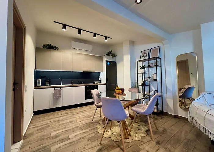 Denne ferielejlighed ligger 16 minutters gang fra Ekklisia Panagia Korifini. Gæsterne kan nyde italienske snacks og måltider i Pizza 89 placeret 250 meter væk. Du kan komme til Enigma Shopping Center om et par minutter i bil.